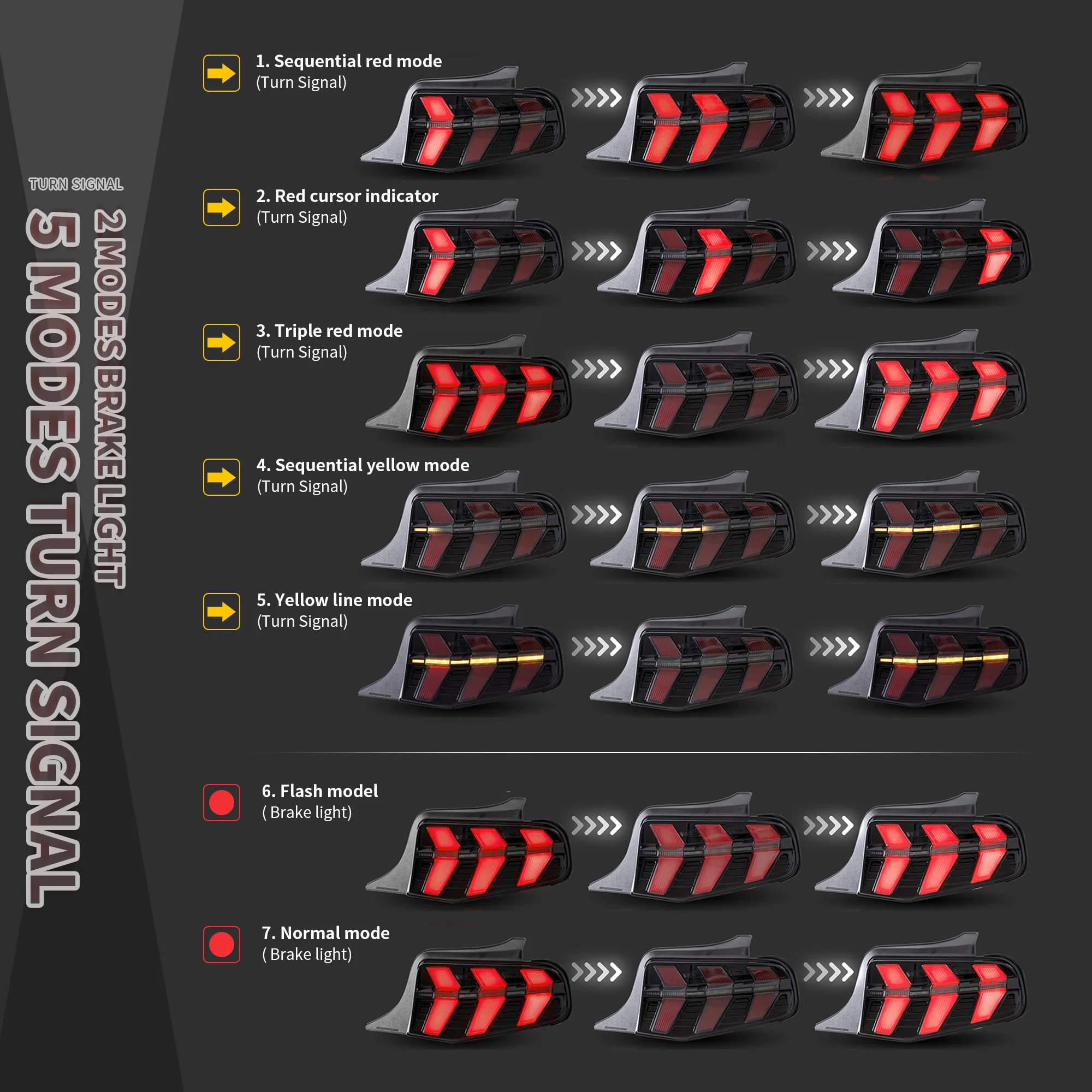 Turn Signals: LED (Amber/Red(Switchable), With Sequential Indicators(Switchable))